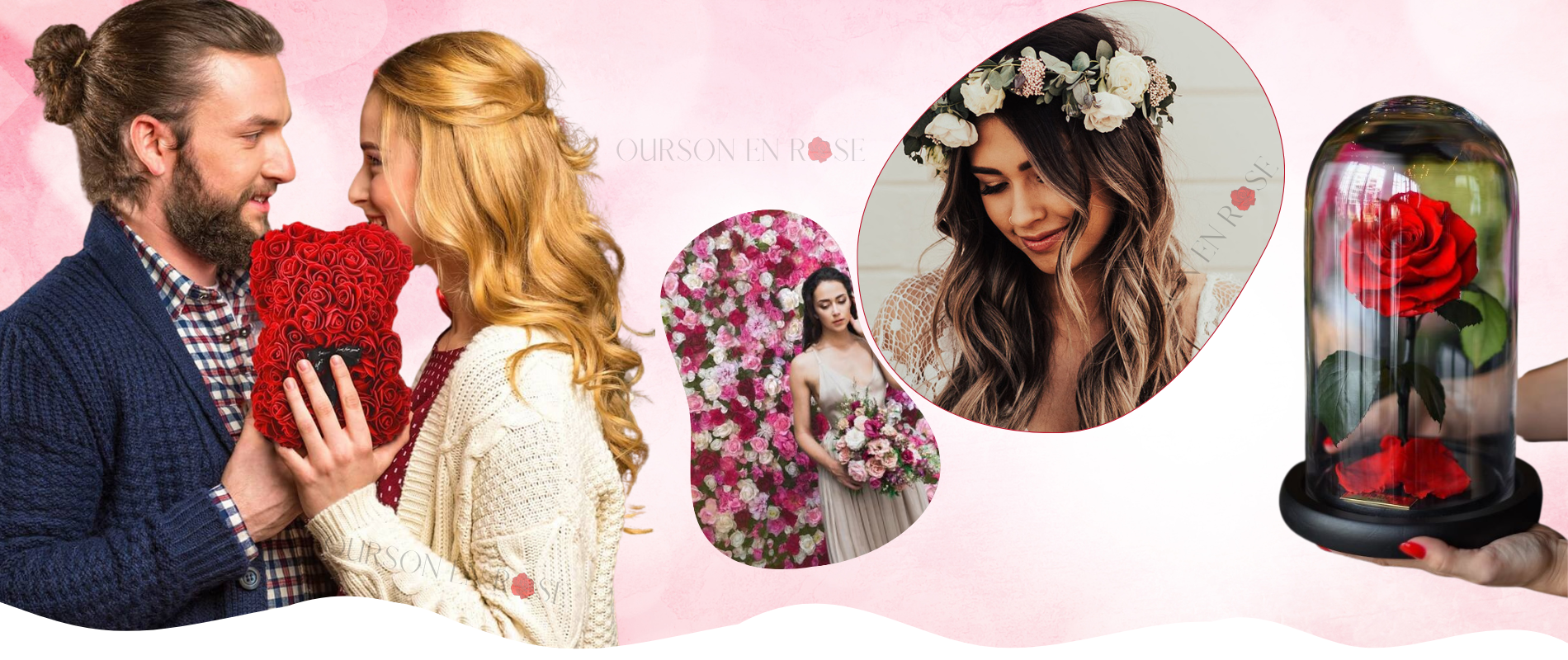 Trouvez des cadeaux remplis de tendresse et de douceur, comme des oursons en pétales de rose, des cœurs de roses rouges et des murs de fleurs aux couleurs pastel. Chaque pièce est un symbole d'amour et de romantisme, parfait pour exprimer vos sentiments.